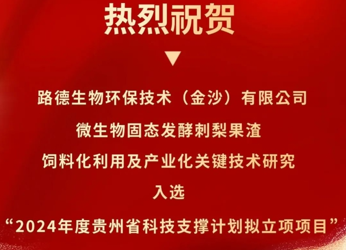 近日,贵州省科学技术厅公布了省科技计划拟立项项目,路德环境旗下子公司——路德生物环保技术(金沙)有限公司承担的“微生物固态发酵刺梨果渣饲料化利用及产业化关键技术研究”项目,入选“2024年度贵州省科技支撑计划拟立项项目”。 此项殊荣,是路德环境以技术创新,引领有机糟渣资源化业务从白酒糟向其它食品饮料糟渣多元拓进、开辟公司可持续发展新赛道的重要一步。未来,随着该科研项目不断取得新突破,势必将与贵州刺梨产业“延伸产业链、完善供应链、提升价值链”形成高度匹配,为贵州省打造百亿级特色优