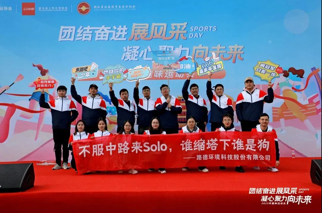 11月12日,由湖北省上市公司协会联合 湖北省证券期货业协会、 湖北省证券投资基金业协会 共同举办的2023年趣味运动会成功举行。 路德环境应召参赛, 与38支队伍一起竞逐巅峰, 用澎湃激情驱散初冬的冷意。 接下来,就让我们跟随图片, 一起来回顾路德健儿们在运动场上的英姿。 图 | 39支参赛队伍大合影 一座竞技舞台,39支参赛队伍, 只待一声令下,好戏马上开场。 图 | 路德环境参赛队 成绩好坏先不管, 但口号一定要霸气。 图 | 拔河比赛 既然选择站到了赛场上, 就
