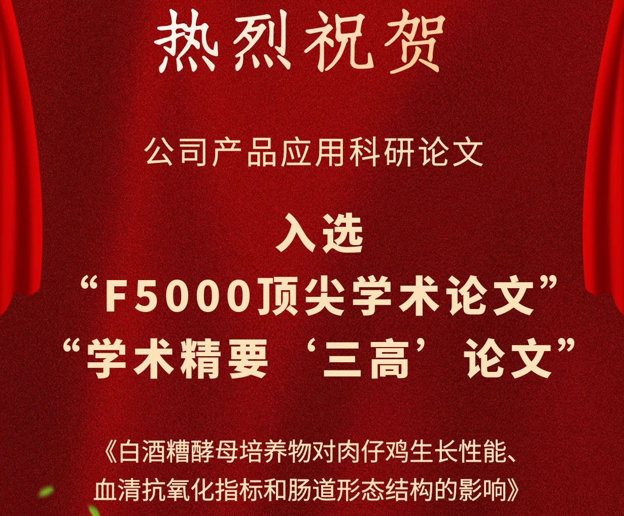 近日,公司产品应用科研领域又闻佳讯传来! 公司与中国农业科学院饲料研究所家禽营养与饲料创新团队共同完成并发表于《动物营养学报》(2019,31(5): 2357-2366)的学术论文—《白酒糟酵母培养物对肉仔鸡生长性能、血清抗氧化指标和肠道形态结构的影响》,入选2022年度“领跑者5000—中国精品科技期刊顶尖学术论文(F5000)”和学术精要(2023年5-6月)高PCSI论文、高被引论文和高下载论文。 该论文探究了公司白酒糟酵母培养物对肉仔鸡生长性能、血清抗氧化指标和肠道形态结构的影响。研究表明,饲粮添加白酒糟酵母
