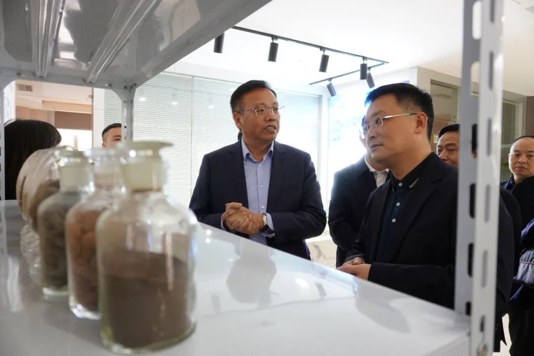路德环境董事长、总经理季光明、董事会秘书刘菁、古蔺路德董事长赵腾等进行了热情接待。季光明向梁铮一行介绍了路德环境的发展历程,并参观了公司的专利墙、河湖淤泥和工程泥浆综合处理中心沙盘区及研发产品展示区。梁铮对路德环境的科技研发实力表示赞叹,对河湖淤泥综合处理中心大体量、高效能、可复制的工厂化运营模式表示高度肯定。