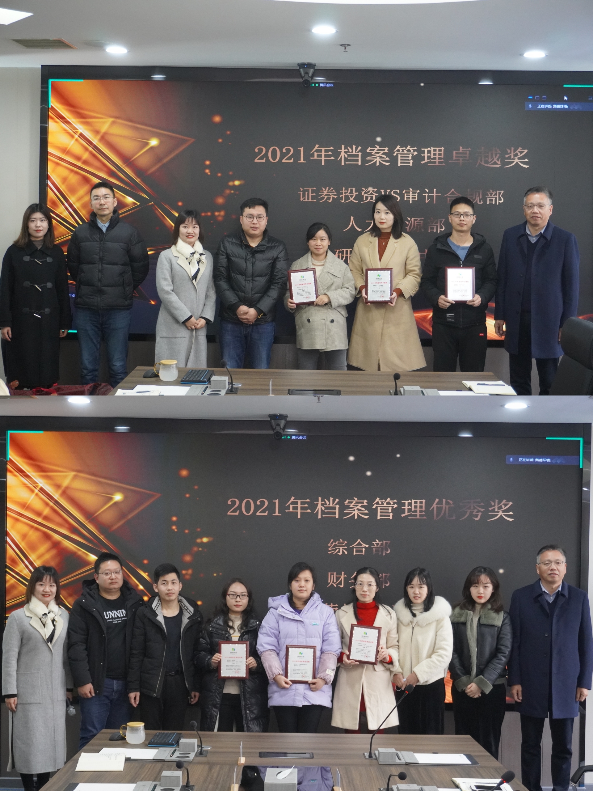 最后,季光明先生和刘菁女士对本次档案检查荣获卓越奖和优秀奖的部门颁发了荣誉奖牌,此次档案检查工作圆满落幕。