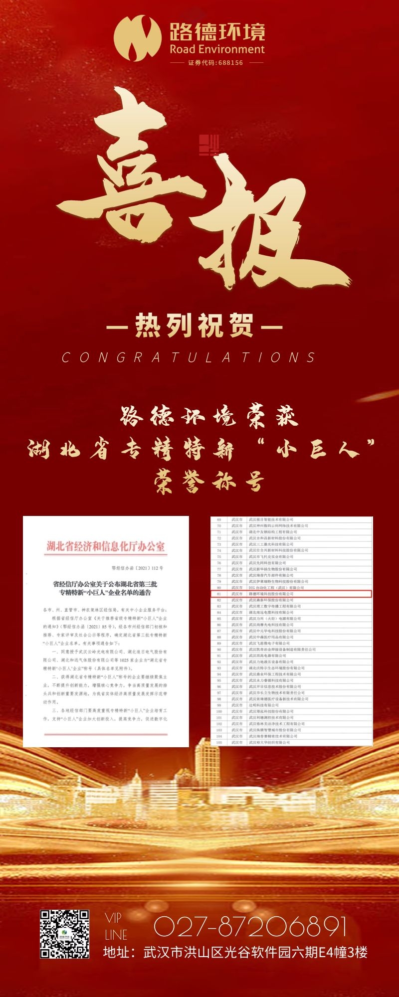 喜报:路德环境荣获2021年湖北省专精特新“小巨人”荣誉称号