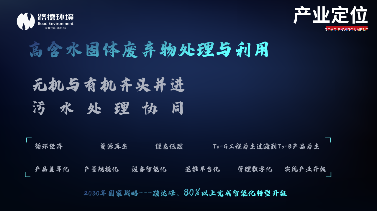 2022年是路德环境成立的第16个年头,当初以河湖淤泥、市政污泥的治理作为出发点,筚路蓝缕、艰苦创业,终于实现了2020年上交所科创板上市。2015年来随着国央企大举进场,产业集中度快速提高,市场蓝海变红海,环保企业潮起潮落,我们的商业模式也需要重塑和进化,即建立在可持续的刚性需求、差异化的竞争优势之上,以“环保工程/打猎模式”+“生物饲料/种植模式”,齐头并进。