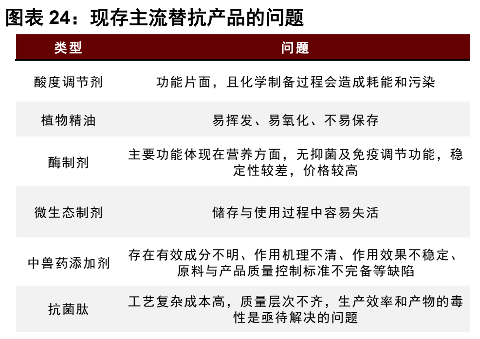 不过,抗生素虽然退出了舞台,但“它打下的那片江山”犹在,市场上也源源不断地涌现出不同的抗生素替代品,微生态活菌制剂、酶制剂、酸化剂、抗菌肽以及天然植物及其提取物等,都是该领域的热门“选手”。