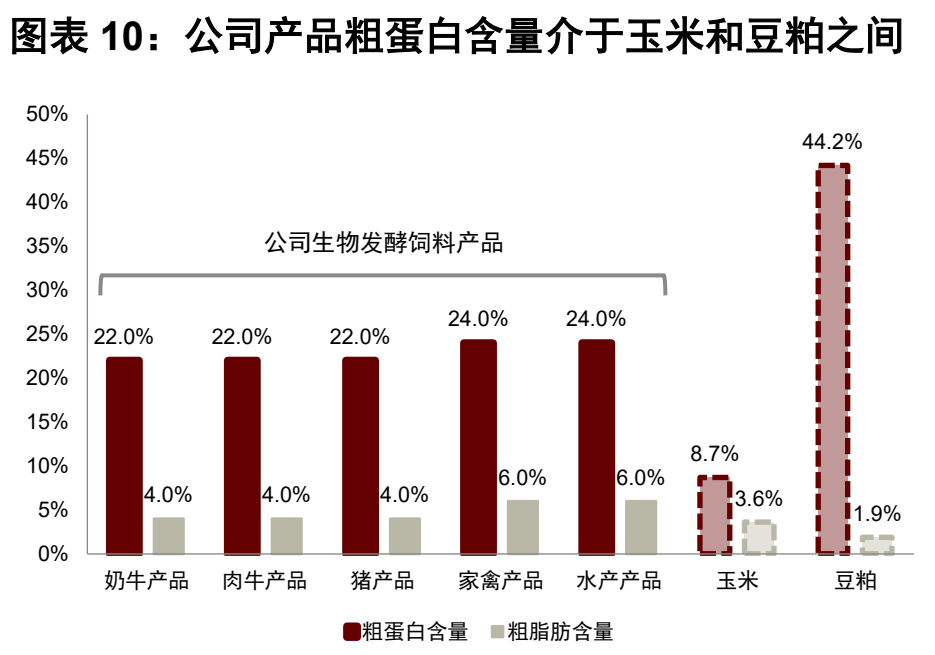 在功能性方面:公司生物发酵饲料产品又含有酵母源蛋白、β—葡聚糖、甘露寡糖、核苷酸、活性肽、有益菌、类消化酶等功能性成分,同时矿物质和维生素含量丰富,能够有效缓解各类应激引起的消化功能障碍、提高动物免疫力、促进动物肠道微生态平衡,能够有效充当抗生素的替代品。