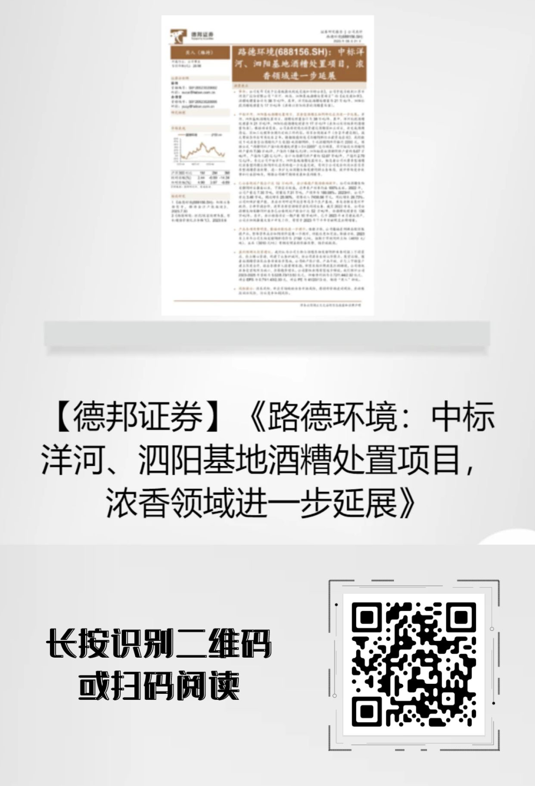【点评报告】德邦证券点评路德环境:中标洋河、泗阳基地酒糟处置项目,浓香领域进一步延展