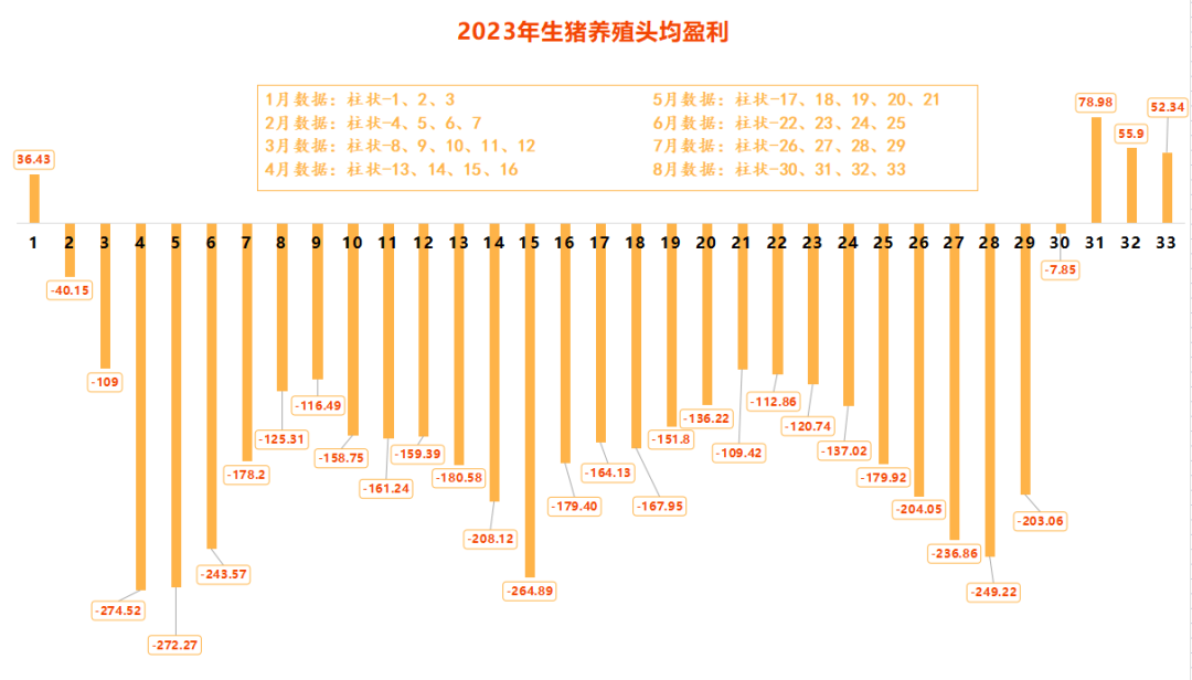 2023年以来,我国生猪养殖头均盈利状况 数据来源:发改委价格监测中心、卓创资讯