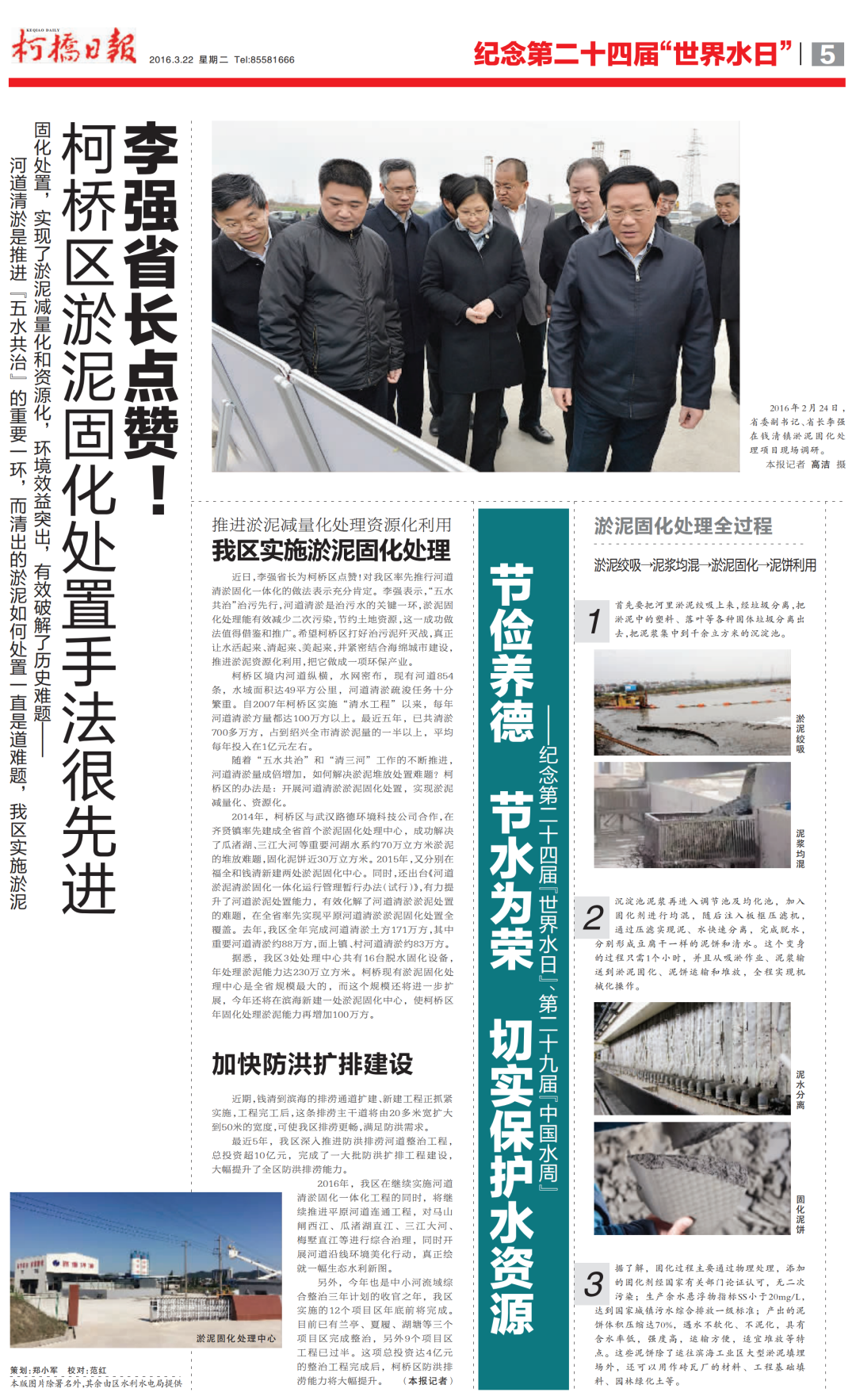 2016年,公司在绍兴柯桥的淤泥固化处理项目获浙江省政府赞誉 图片来源:柯桥日报