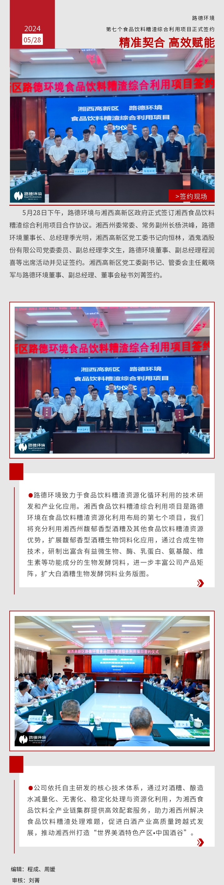 【路德·要闻】精准契合,高效赋能 | 路德环境第七个食品饮料糟渣综合利用项目正式签约