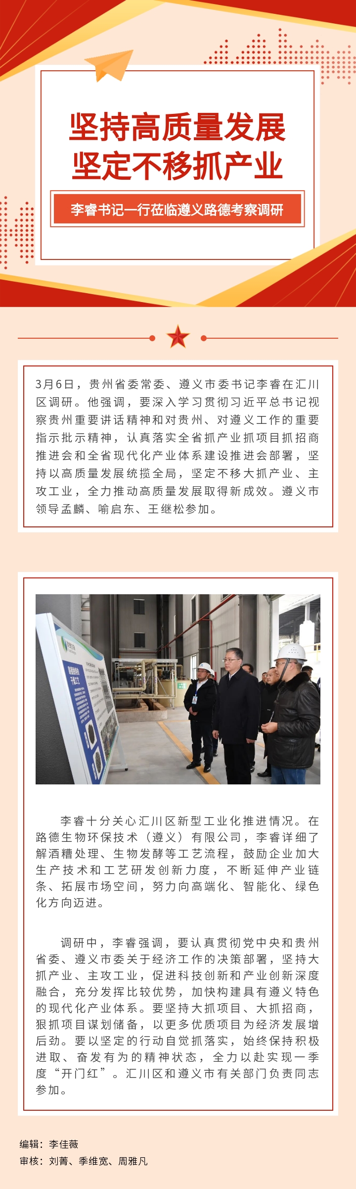 【路德·要闻】贵州省委常委、遵义市委书记李睿一行莅临路德生物环保技术(遵义)有限公司考察调研