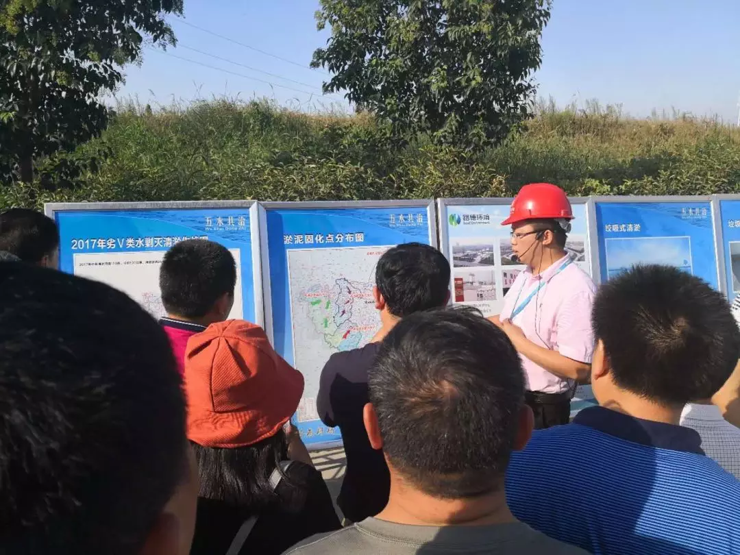 我公司副总经理兼工程部经理吴军、企业发展部经理李兴文带领各位领导及学员参观了绞吸淤泥、格栅沉淀池、材料(FSA/HEC)添加、压滤脱水、脱水泥饼和尾水处理工艺现场,充分了解了淤泥脱水固结一体化处理流程,拓宽了思路,开阔了视野,大家纷纷表示获益良多。本次培训使各位河(湖)长充分了解科学治水理念,深入学习了治理规划技术方案,为今后大家全面深化河长制、履行河长职责、共同实现河长制工作的下一步目标奠定重要的指导意义。