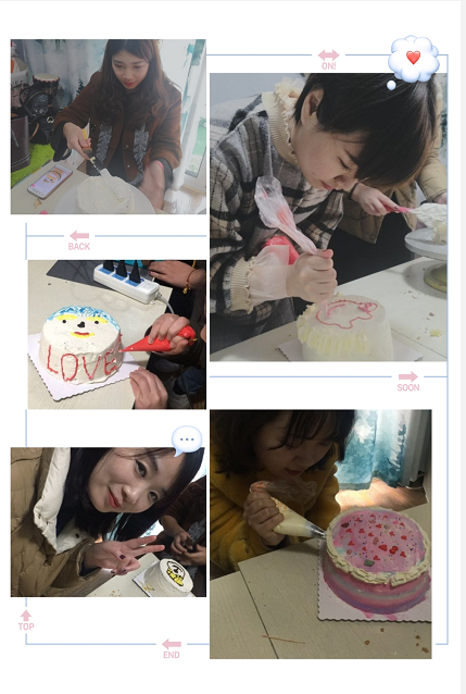 开始做蛋糕啦!这个裱花盘怎么这么不听话,这个刮刀咋抹不平蛋糕面啊?为了抹出一个平整的蛋糕,十八种练功姿势都上了。