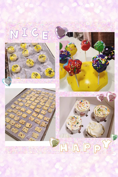 五彩的奶油蛋糕、精致的杯子蛋糕、可口的巧克力棒棒糖、香喷喷的蛋黄酥和蔓越莓曲奇都一一制作成功,空气中弥漫着香甜的气息,大家及学习了烘焙知识,也品尝了香甜可口的甜点。