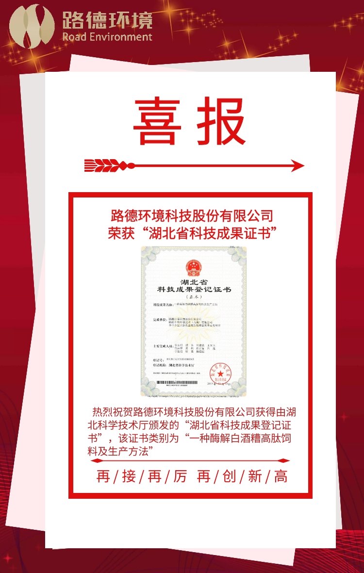 热烈祝贺路德环境科技股份有限公司荣获“湖北省科技成果证书”