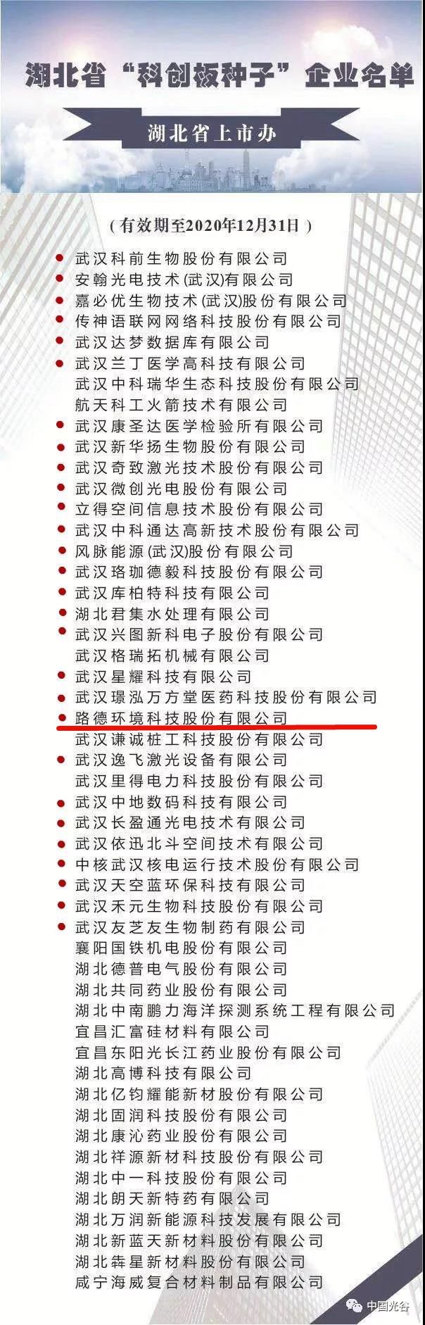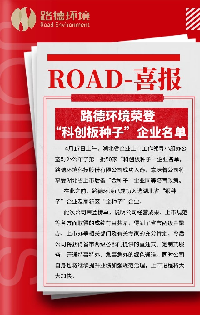 热烈祝贺路德环境荣登 湖北省“科创板种子”企业名单