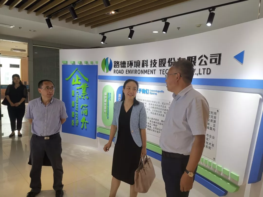 2019年6月26日,深圳证券交易所党委委员、副总经理王红一行莅临路德环境调研企业上市准备情况。湖北证监局处长王蓓、省上市工作指导中心副主任向勇、省地方金融监管局副处长杨婕、路德环境董事长季光明等陪同考察。