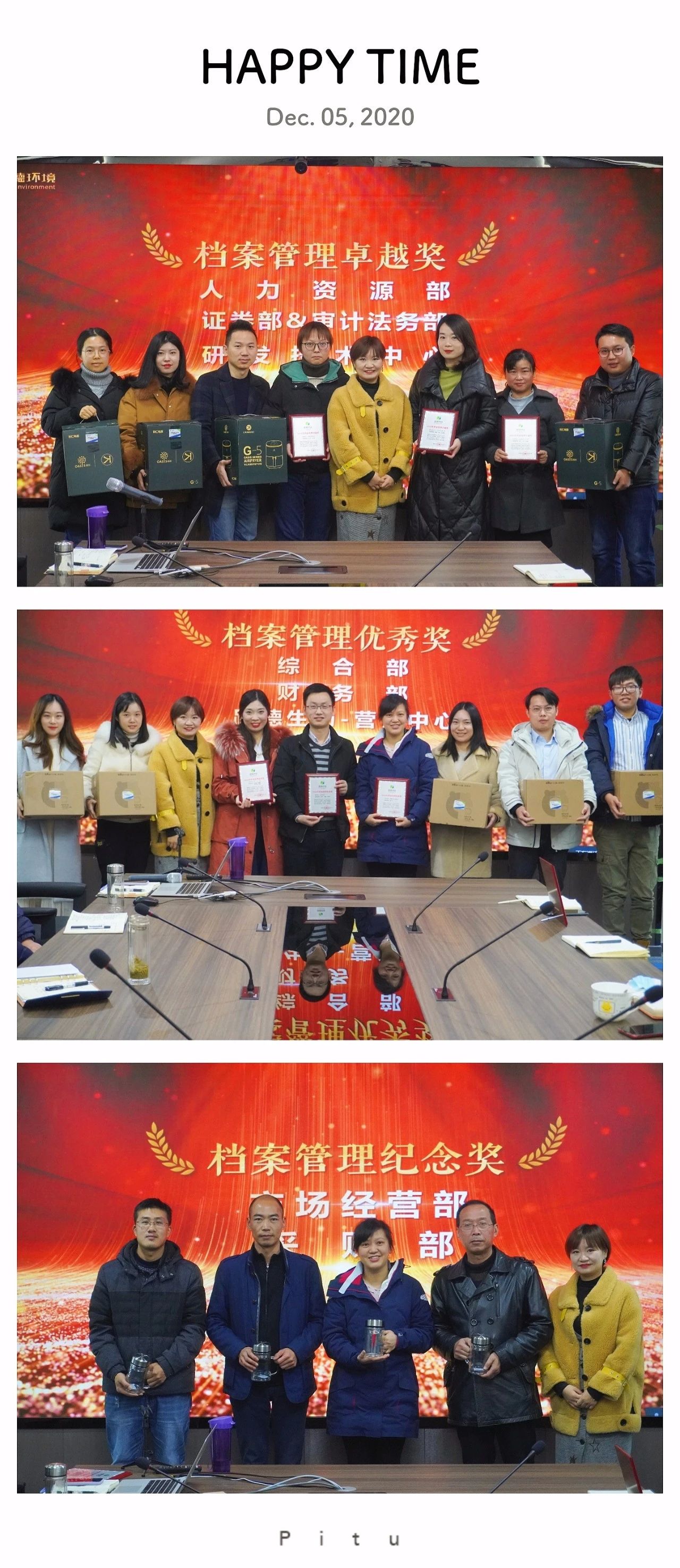 根据检查组评分情况,评选出档案管理卓越奖、档案管理优秀奖、档案管理纪念奖。公司给予优秀部门授予奖牌,对档案管理员人员颁发奖品,以资鼓励。