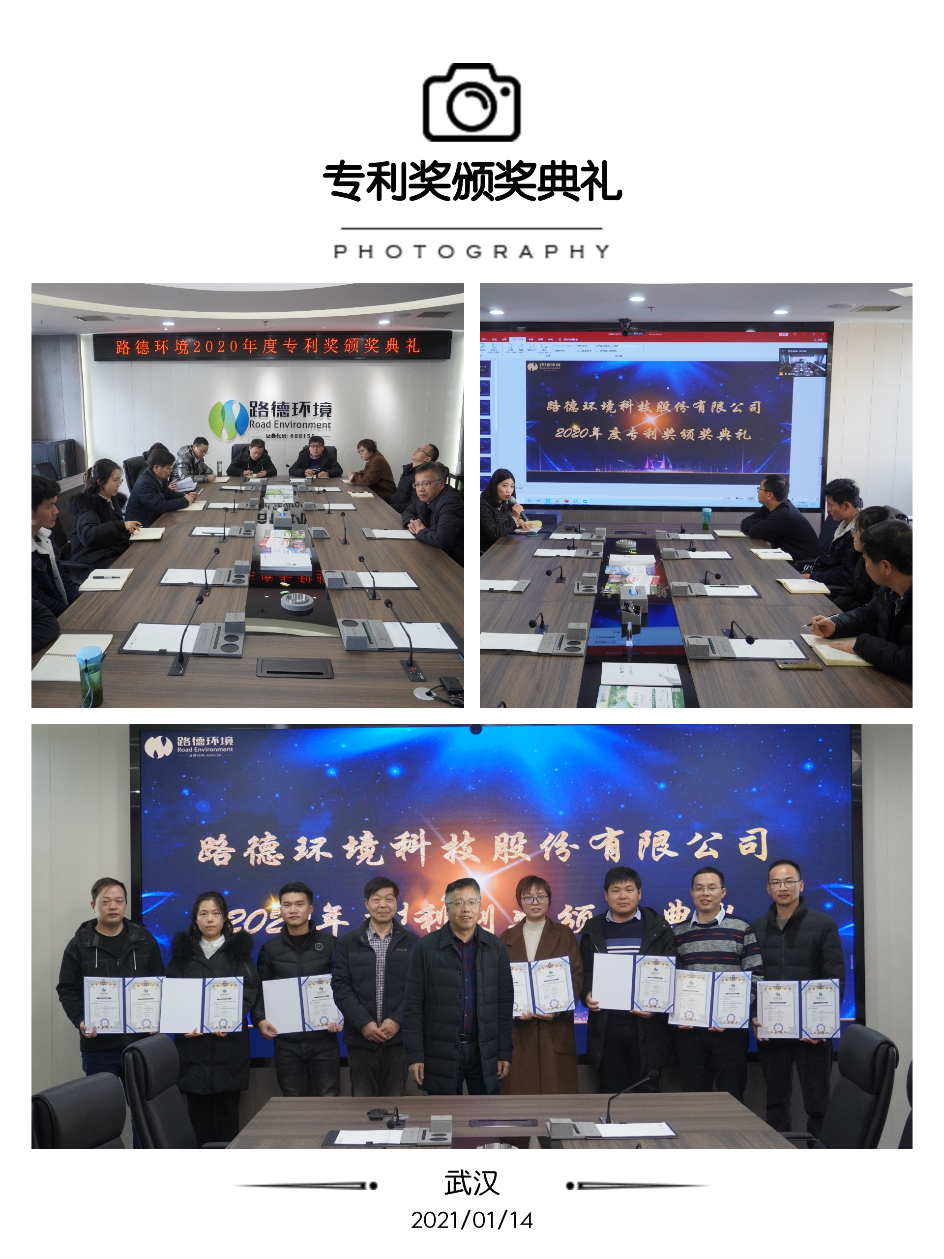 2021年1月14日,为表彰在技术创新研发中涌现的先进个人,路德环境举办2020年度专利奖颁奖典礼,董事长兼总经理季光明先生、技术总监程润喜先生、运营部副总经理吴军先生等参加仪式并为获奖员工颁奖。